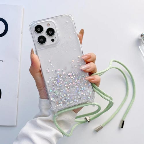 Funda para iPhone 12 Mini Lanyard Glitter Epoxy Clear Phone Case (Verde)