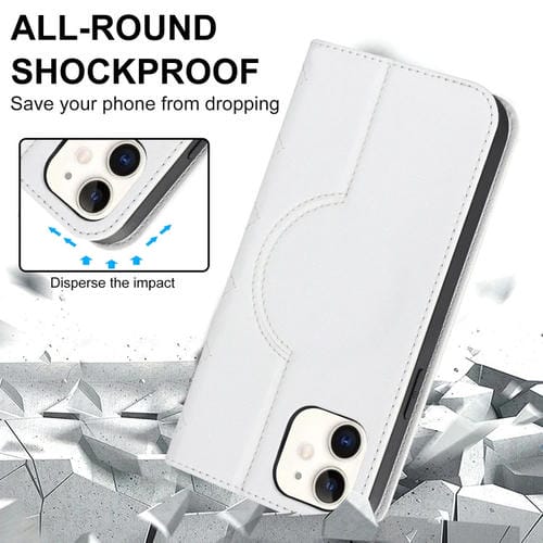 Funda para iPhone 12 Mini Rhombic Magsafe Rfid Antirrobo de Cuero (Blanco)
