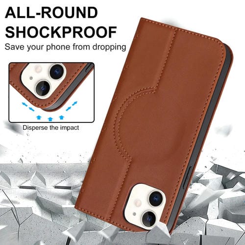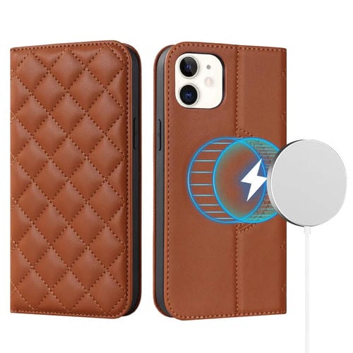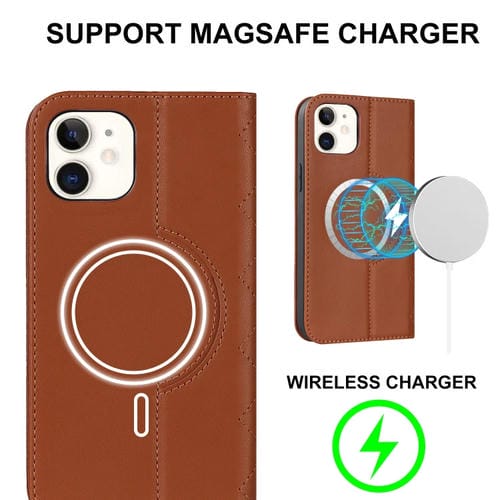 Funda para iPhone 12 Mini Rhombic Magsafe Rfid Antirrobo de Cuero (Marrón)