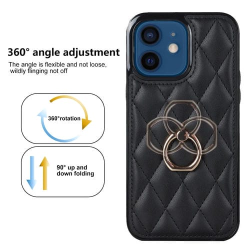 Funda de Cuero Rhombic para iPhone 12 Mini con Soporte para Anillo (Negro)