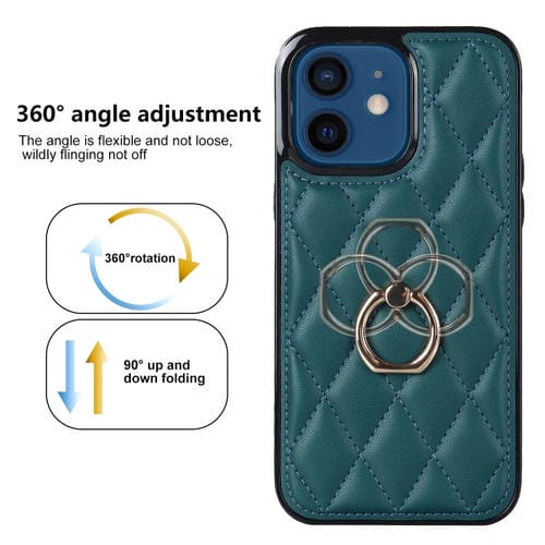 Funda para teléfono iPhone 12 Mini Rhombic PU Cuero con Soporte para Anillo (Verde)