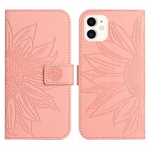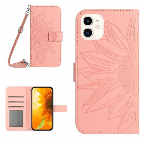 Funda de Cuero para iPhone 12 Mini Skin Feel Sun Flower Pattern Flip con Cordón (Rosa)
