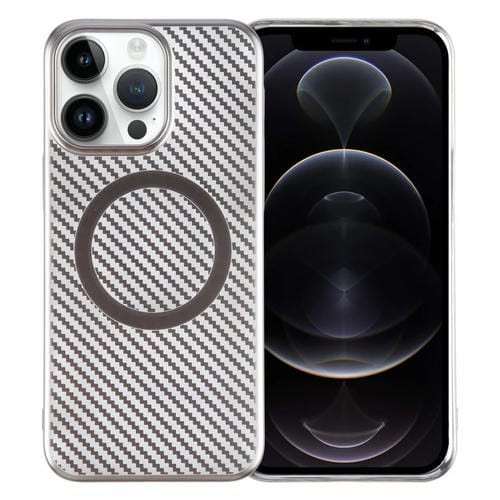 Caja de Teléfono para iPhone 12 Pro 6D PC Magsafe Transparente con Fibra de Carbono (Gris Titanio)