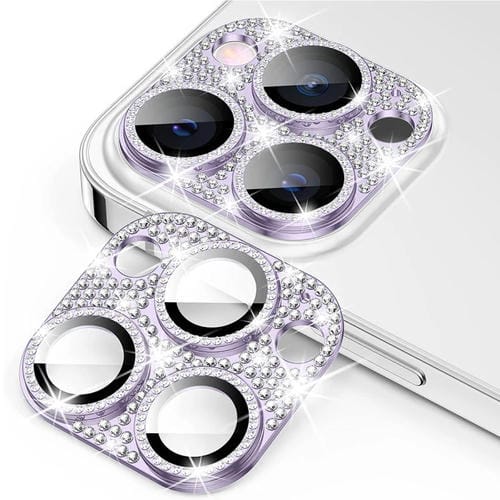 Película de Vidrio Templado para Lente de Cámara iPhone 12 Pro Enkay Hat-Prince Blink Diamond de Aleación de Aluminio (Púrpura Claro)