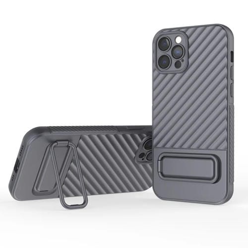 Funda de Teléfono TPU para iPhone 12 Pro con Textura Ondulada y Película de Lente (Gris)