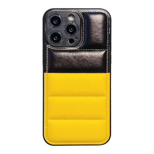 Funda para Teléfono iPhone 12 Pro Chaqueta de Plumón Bloques de Color (Negro Amarillo)
