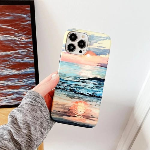 Estuche para teléfono iPhone 12 Pro Max 2 en 1 con patrón de mar y pintura al óleo desmontable (Amarillo Rosa)