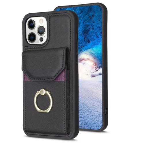 For iPhone 12 Pro Max BF29 Phone Case with Ring Holder and Organ Card Bag (Black)