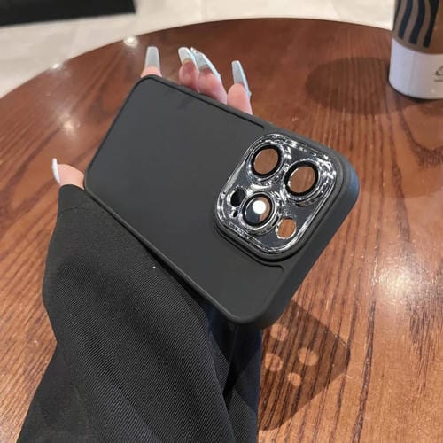 Caja de Teléfono para iPhone 12 Pro Max con Marco de Lente Galvanizada y Película de Lente (Negro)
