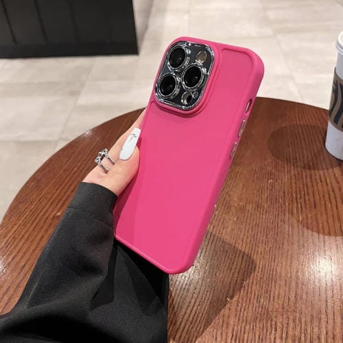 Caja de Teléfono para iPhone 12 Pro Max con Marco de Lente Galvanizada y Película (Rosa Roja)