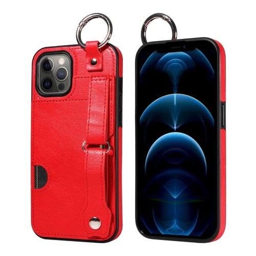 Caja de teléfono para iPhone 12 Pro Max con anillo y ranura para tarjeta con textura de pantorrilla (Rojo)