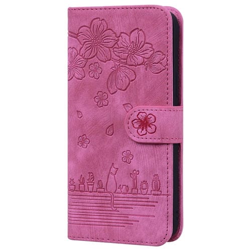 Estuche para iPhone 12 Pro Max Cartoon Sakura Cat de Cuero en Relieve (Rose Red)