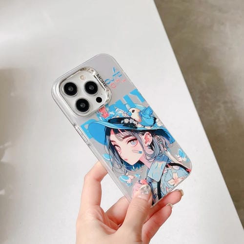 Caja del Teléfono iPhone 12 Pro Max Estilo Antiguo Chino Lente Galvanizada Anillo PC Híbrido TPU (Chica de Pelo Plateado)