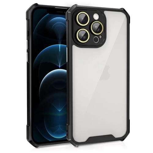 Estuche Acrílico para iPhone 12 Pro Max a Prueba de Golpes con Película de Vidrio para Lentes (Negro)