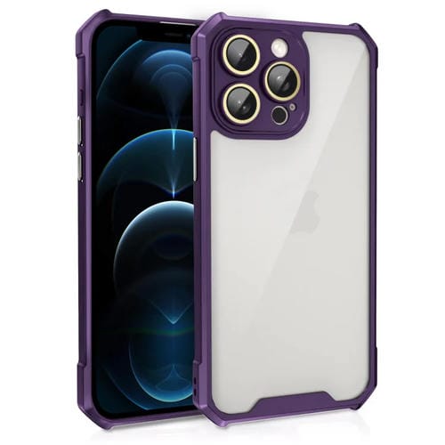 Estuche acrílico para iPhone 12 Pro Max a prueba de golpes con Película de vidrio para Lentes (Púrpura)