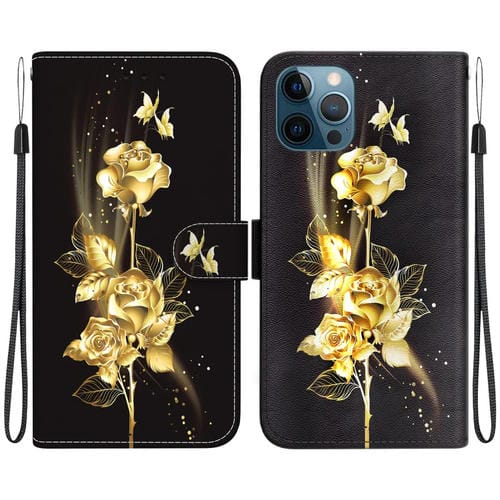 Estuche para Teléfono iPhone 12 Pro Max Cuero Dibujo Coloreado Textura Cristal (Mariposa Dorada Rosa)