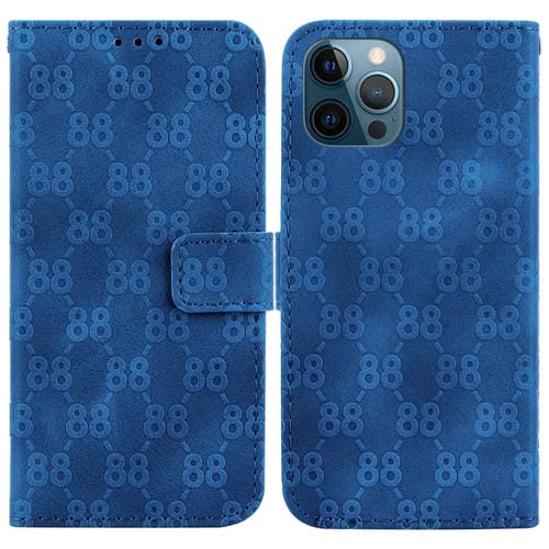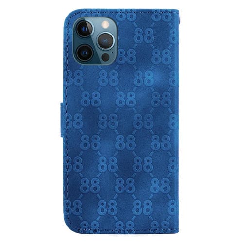 For iPhone 12 Pro Max Double 8 Shape Embossed Leather Phone Case (Blue)