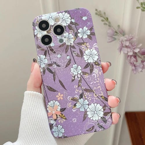 Funda para iPhone 12 Pro Max PC Patrón de Flores Etiqueta de Agua (Púrpura)
