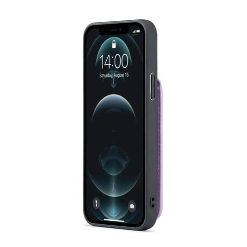 Funda para teléfono Fierre Shann Crazy Horse iPhone 12 Pro Max Tarjetero Contraportada PU (Púrpura)