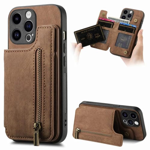 Funda para iPhone 12 Pro Max Cuero Retro con Cremallera y Billetera (Marrón)
