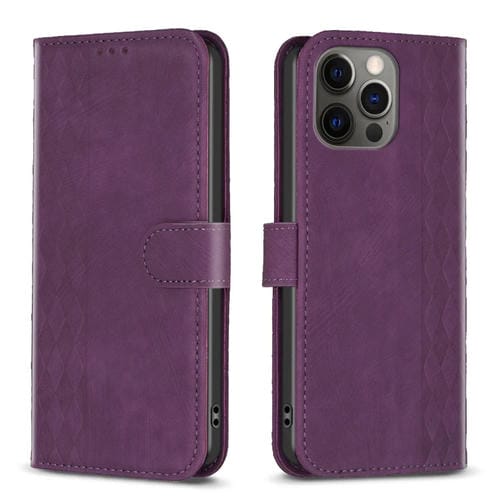 Funda de Teléfono iPhone 12 Pro Max Cuero En Relieve a Cuadros (Púrpura)