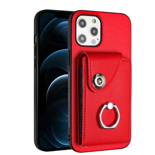 Funda para Teléfono iPhone 12 Pro Max con Soporte para Anillo y Bolsa para Tarjeta (Rojo)
