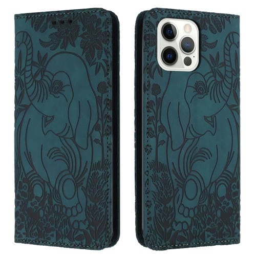 Funda para Teléfono iPhone 12 Pro Max Cuero Relieve Elefante Retro (Verde)