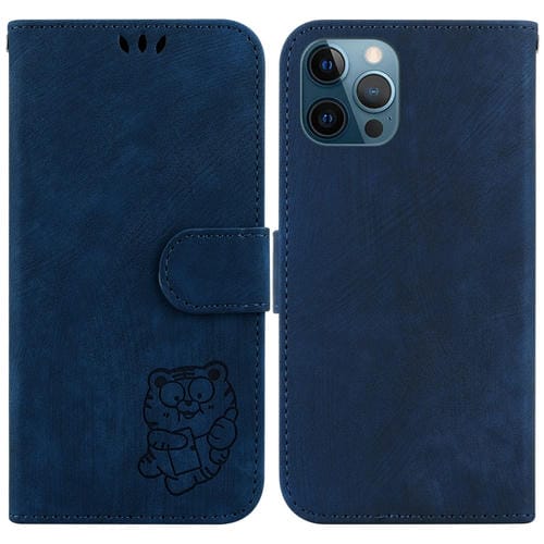 Funda para Teléfono iPhone 12 Pro Max Cuero con Relieve Little Tiger (Azul Oscuro)