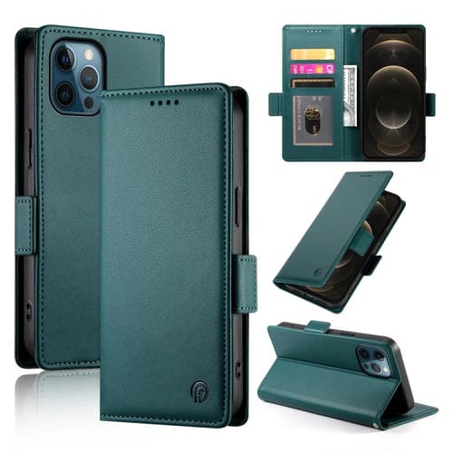 Funda para Teléfono iPhone 12 Pro Max Cuero Esmerilado Magnético con Hebilla Lateral (Verde Oscuro)