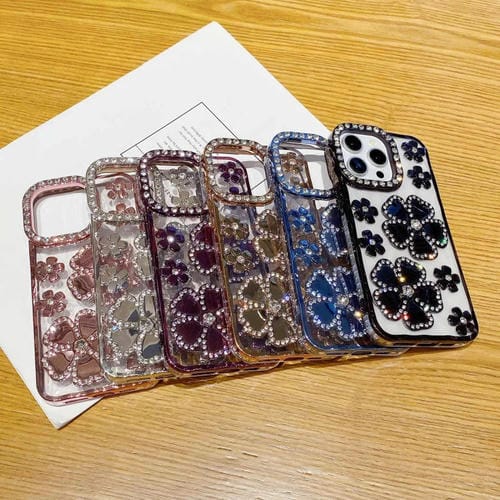 Funda para Teléfono iPhone 12 Pro Max Galvanoplastia Flor Diamante TPU (Azul)