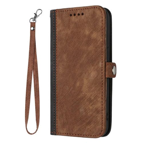 Funda de Cuero para iPhone 12 Pro Max Hebilla Lateral Doble Pliegue Correa de Mano (Marrón)