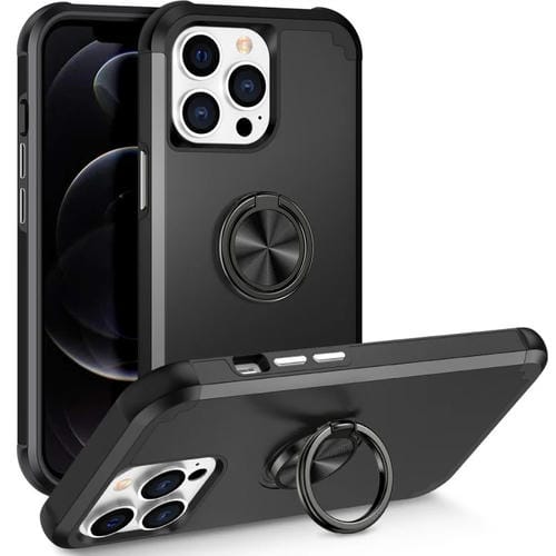 Funda Magnética para Teléfono iPhone 12 Pro Max L2 con Soporte de Anillo Giratorio (Negro)