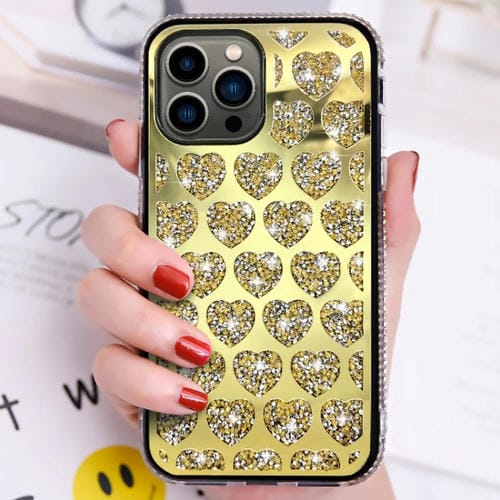 Funda para Teléfono iPhone 12 Pro Max Love Hearts Diamond Mirror TPU (Oro)