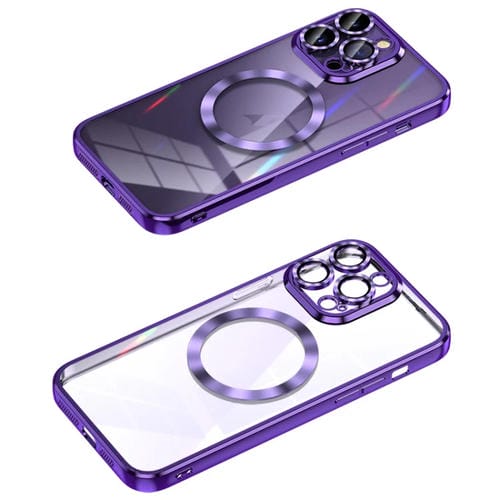 Estuche para teléfono iPhone 12 Pro Max Magsafe Cd Texture Marco de Lente de Metal Cobertura Total (Púrpura)