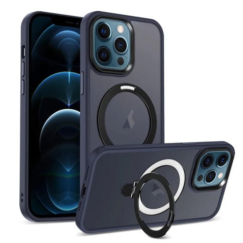 Funda para iPhone 12 Pro Max Magsafe Holder Skin-Feel PC Hybrid TPU (Azul Oscuro)