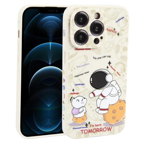 Estuche de teléfono TPU iPhone 12 Pro Max Patrón de Astronauta Esmerilado (Blanco)