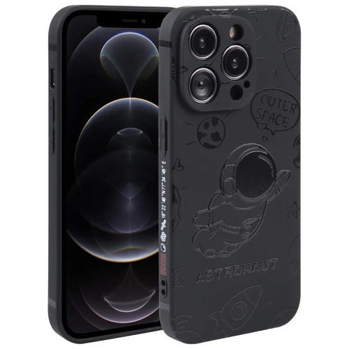 Funda de Teléfono iPhone 12 Pro Max Patrón Astronauta Borde Recto Silicona (Negro)