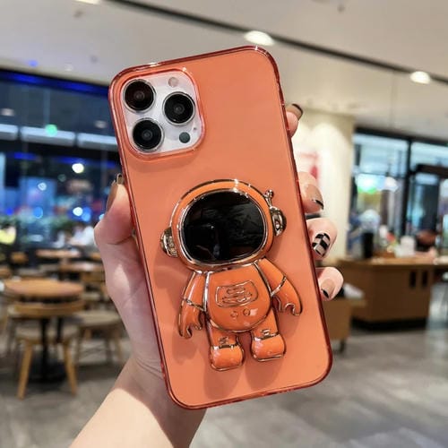 Funda de teléfono TPU Plating Astronaut Holder para iPhone 12 Pro Max (Naranja Rojo)