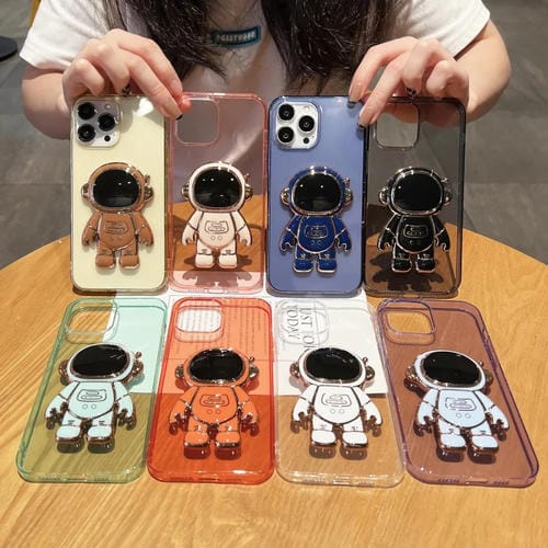 Funda de teléfono TPU Plating Astronaut Holder para iPhone 12 Pro Max (Púrpura)
