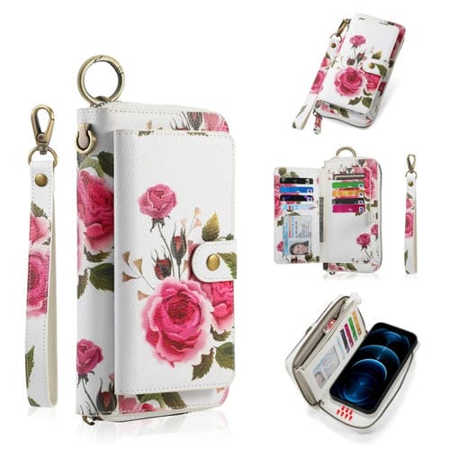 Funda para iPhone 12 Pro Max Pola Magsafe Flower Cuero con Billetera y Cremallera Multifuncional (Beige)