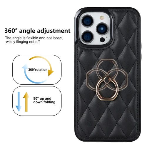 Funda para iPhone 12 Pro Max Rhombic PU Cuero con Soporte para Anillo (Negro)