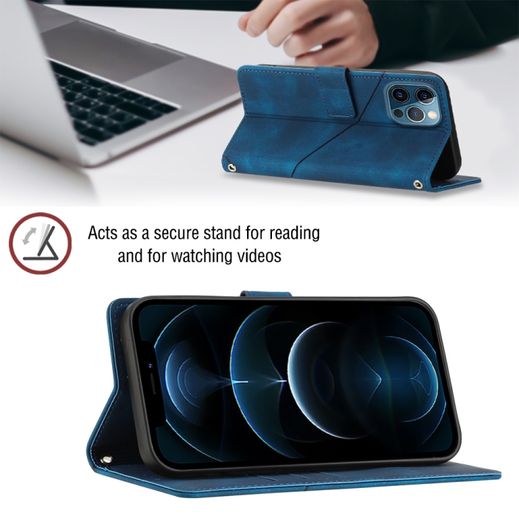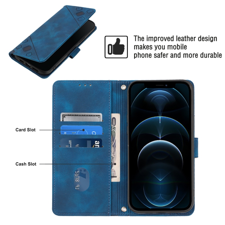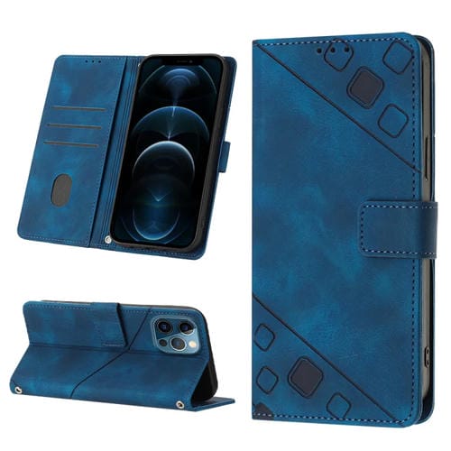 Estuche para Teléfono iPhone 12 Pro Max Skin-Feel Cuero En Relieve (Azul)