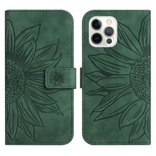 Funda de cuero para iPhone 12 Pro Max Skin Feel Sun Flower Pattern con cordón (Verde)