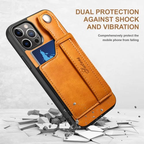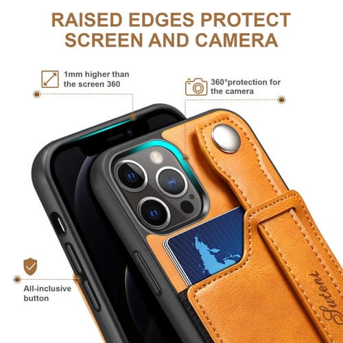 For iPhone 12 Pro Max Suteni 215 Wrist Strap PU Phone Case (Khaki)