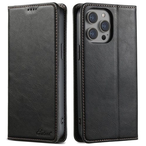 Funda para iPhone 12 Pro Max Suteni J02 Cuero con Billetera de Cera de Aceite (Negro)
