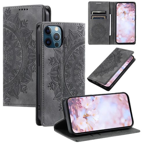 Funda de Cuero Magnética Totem para iPhone 12 Pro Max En Relieve (Gris)