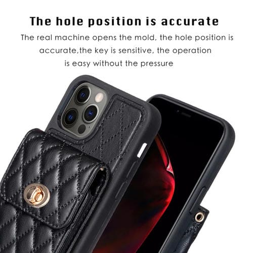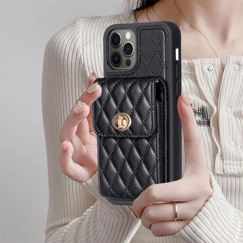 Funda para Teléfono iPhone 12 Pro Max Vertical Metal Hebilla Monedero Rombico Cuero (Negro)