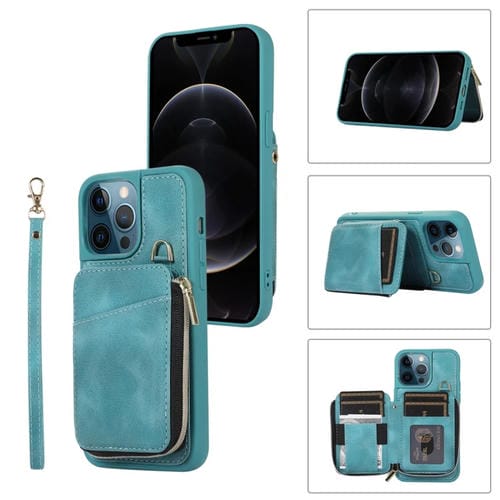 Funda para Teléfono iPhone 12 Pro Max Zipper Card Bag Contraportada (Turquesa)