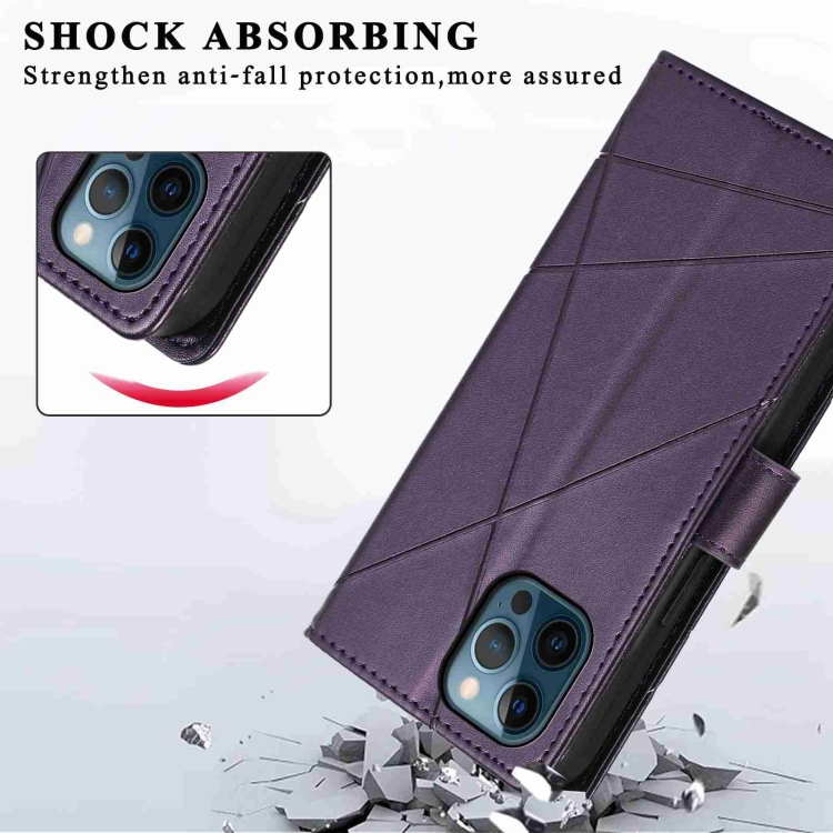 Funda para teléfono iPhone 12 Pro PU con línea en relieve y textura de cuero genuino (Púrpura)