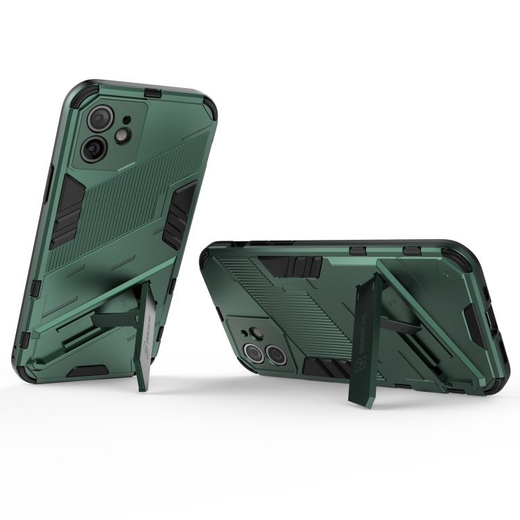 Estuche para iPhone 12 Punk Armor 2 en 1 PC + TPU a Prueba de Golpes con Soporte Invisible (Verde)